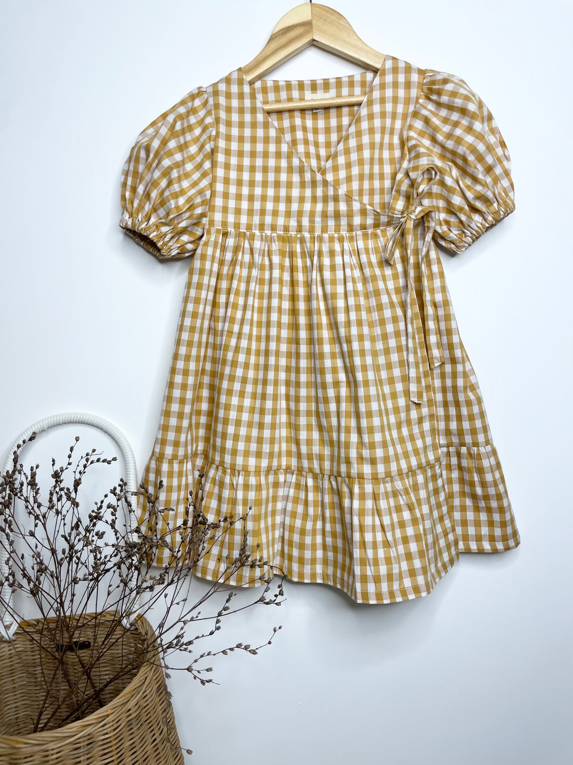 Ellis Wrap Dress - Cotton Gingham Golden Spice