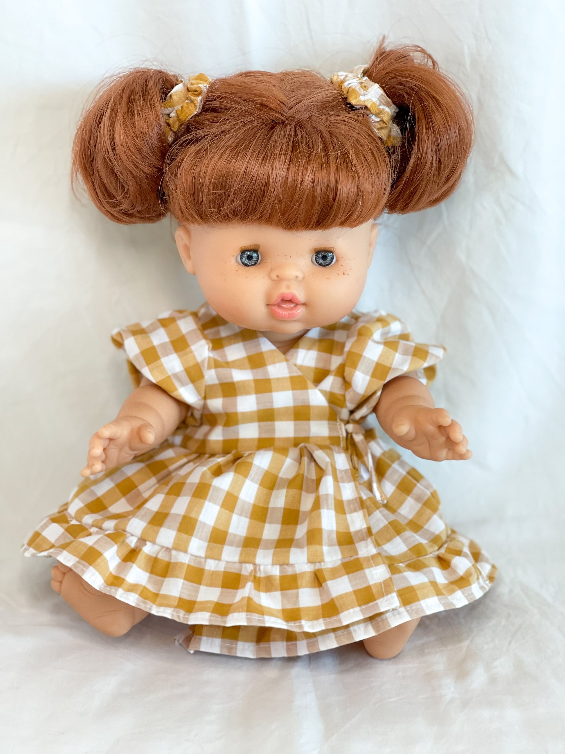 Ellis Wrap Doll’s Dress - Cotton Gingham Golden Spice