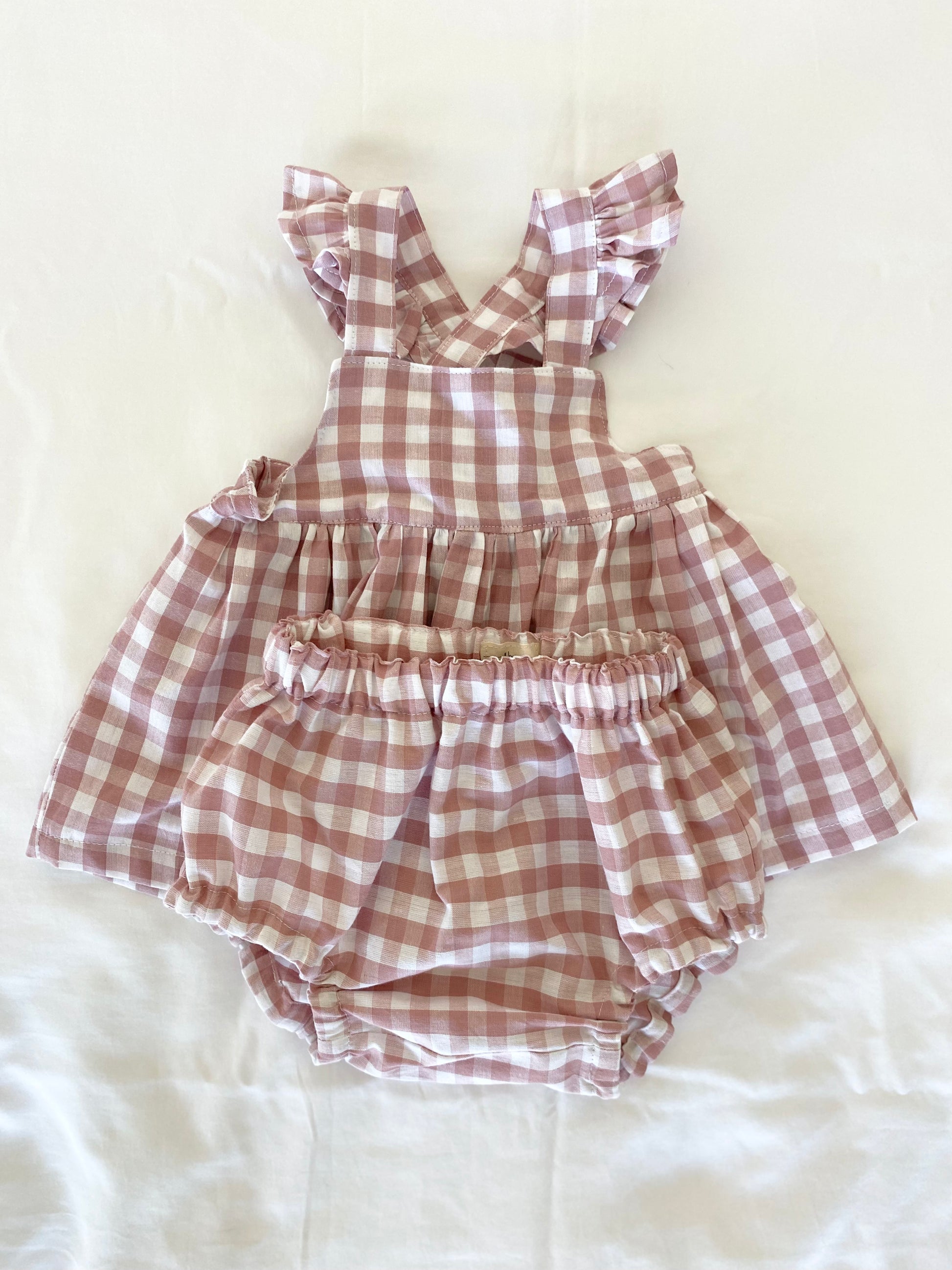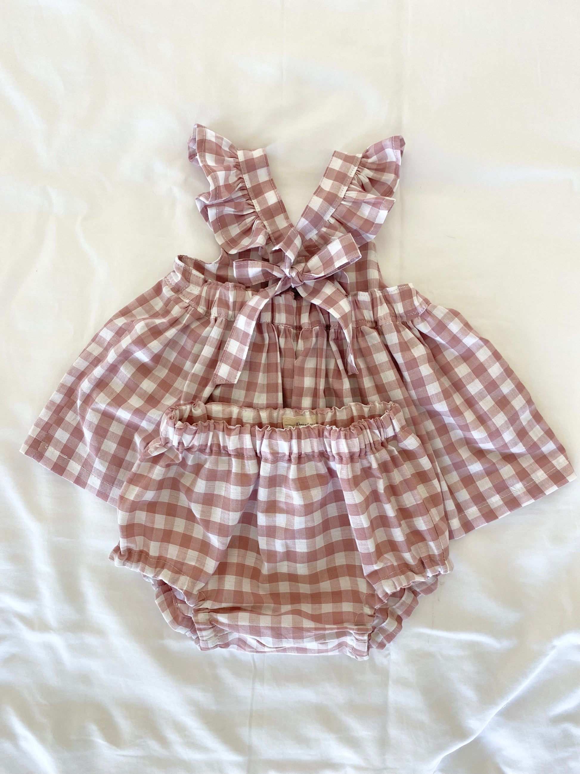 Marigold Peplum Set - Cotton Gingham Antique Pink