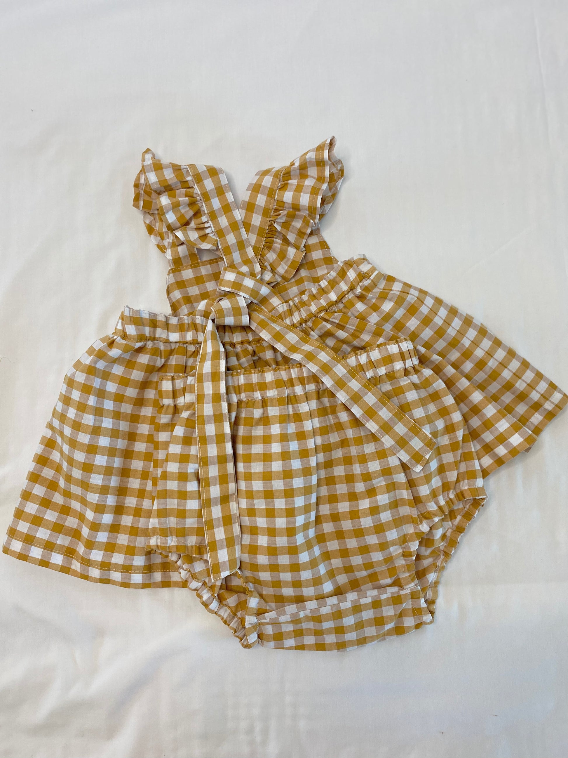 The Narnie and me Marigold Peplum Set is made in a golden spice coloured gingham cotton. It is the perfect seasonal peplum set designed to be worn all year round as is or with layers. The peplum set can be worn as a set or as individual pieces. A great staple for your child’s wardrobe that extends to accommodate with your little one’s growth.