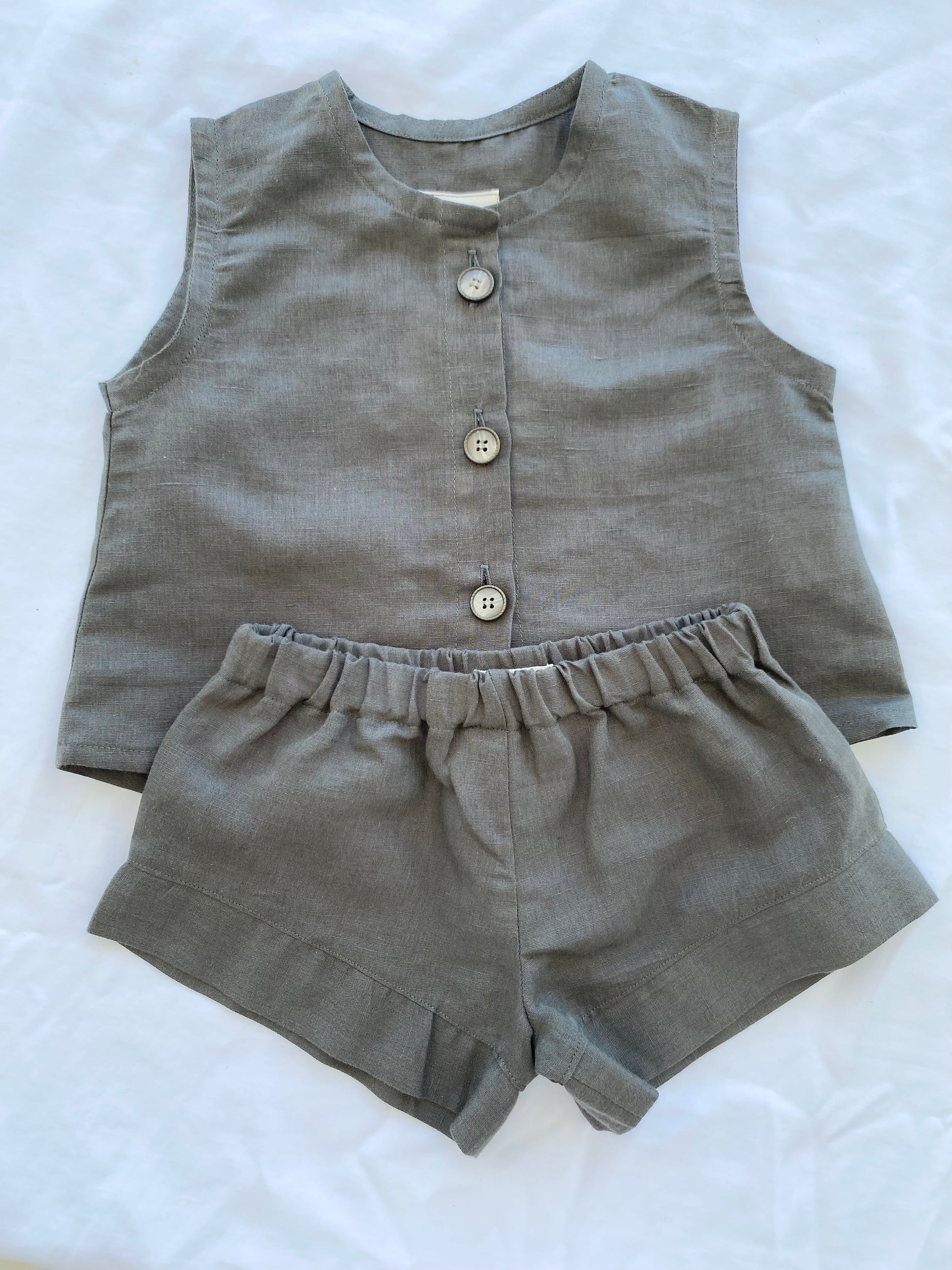 The Unisex Cotton Linen Shorts Top Sets and are available for baby and toddlers. Perfect for summer made in a breathable 100% cotton linen. Designed for everyday wear, comfort, easy movement and play or to be worn for a special occasion.