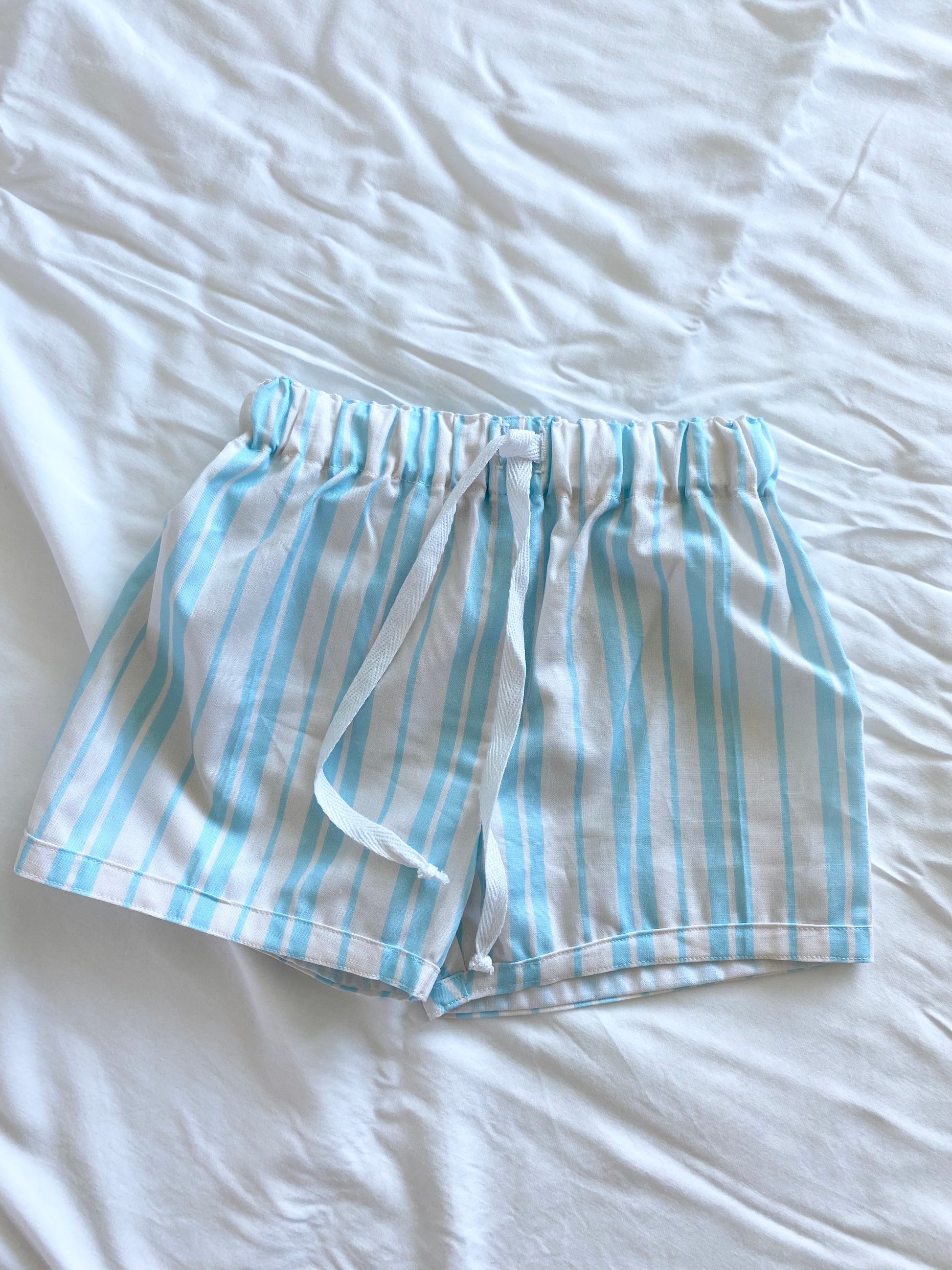 ZaiZai Cotton Drawstring Shorts - Sky Blue Stripe